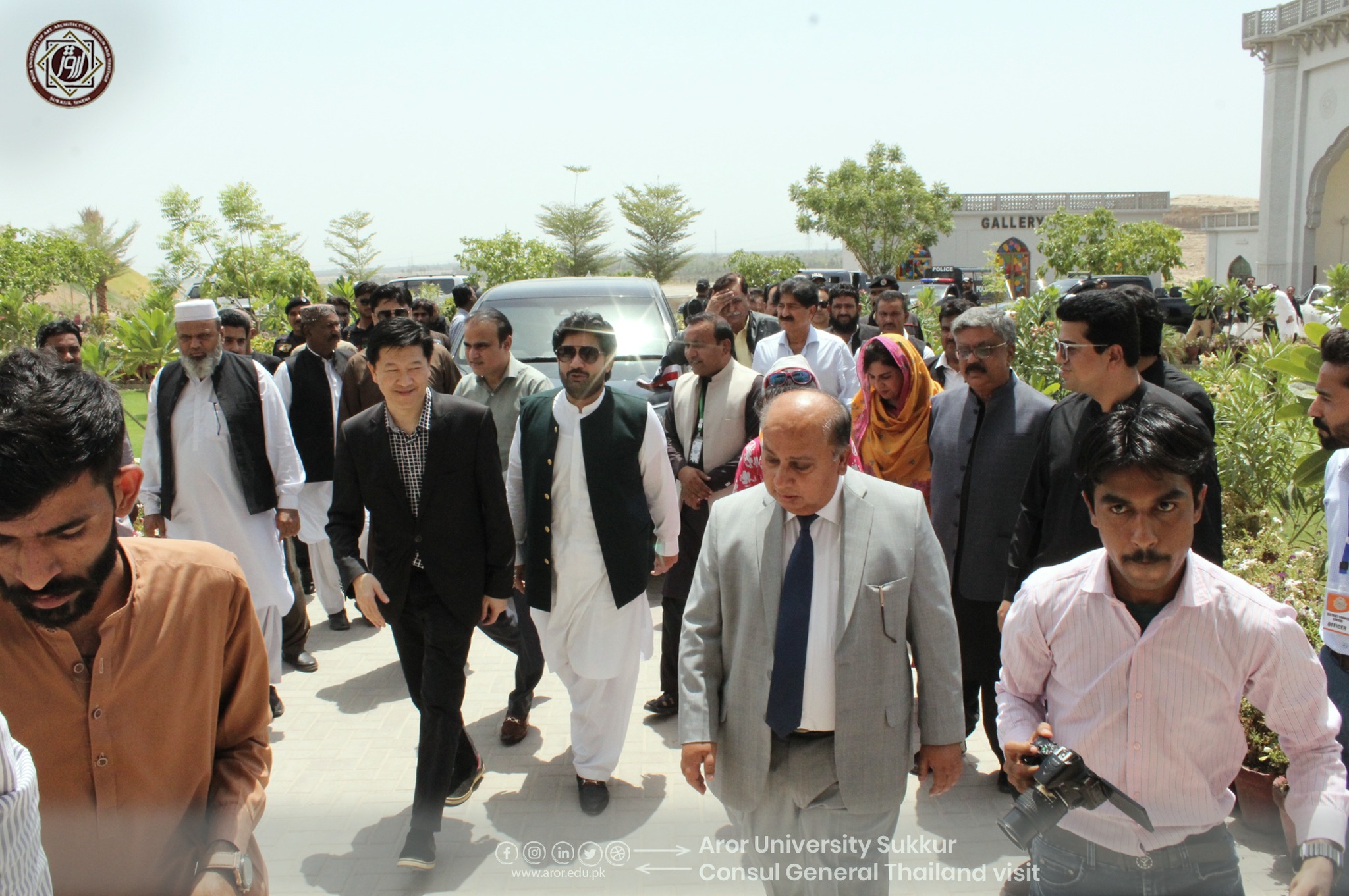 Mr. Narut Soontarodom, Consul General of Thailand, visited Aror University Sukkur on the special invitation of Prof. Dr. Zahid Hussain Khand, Vice Chancellor, Aror University Sukkur. During the visit, several dignitaries were present, including Syed Kumail Hyder Shah, Chairman District Council Sukkur; Fayaz Hussain Abbasi, Commissioner Sukkur; Muhammad Bux Alias Raja Dharejo, Deputy Commissioner Sukkur; and Amir Ali Khan Ghouri, Ex-President, Sukkur Chamber of Commerce & Industry.