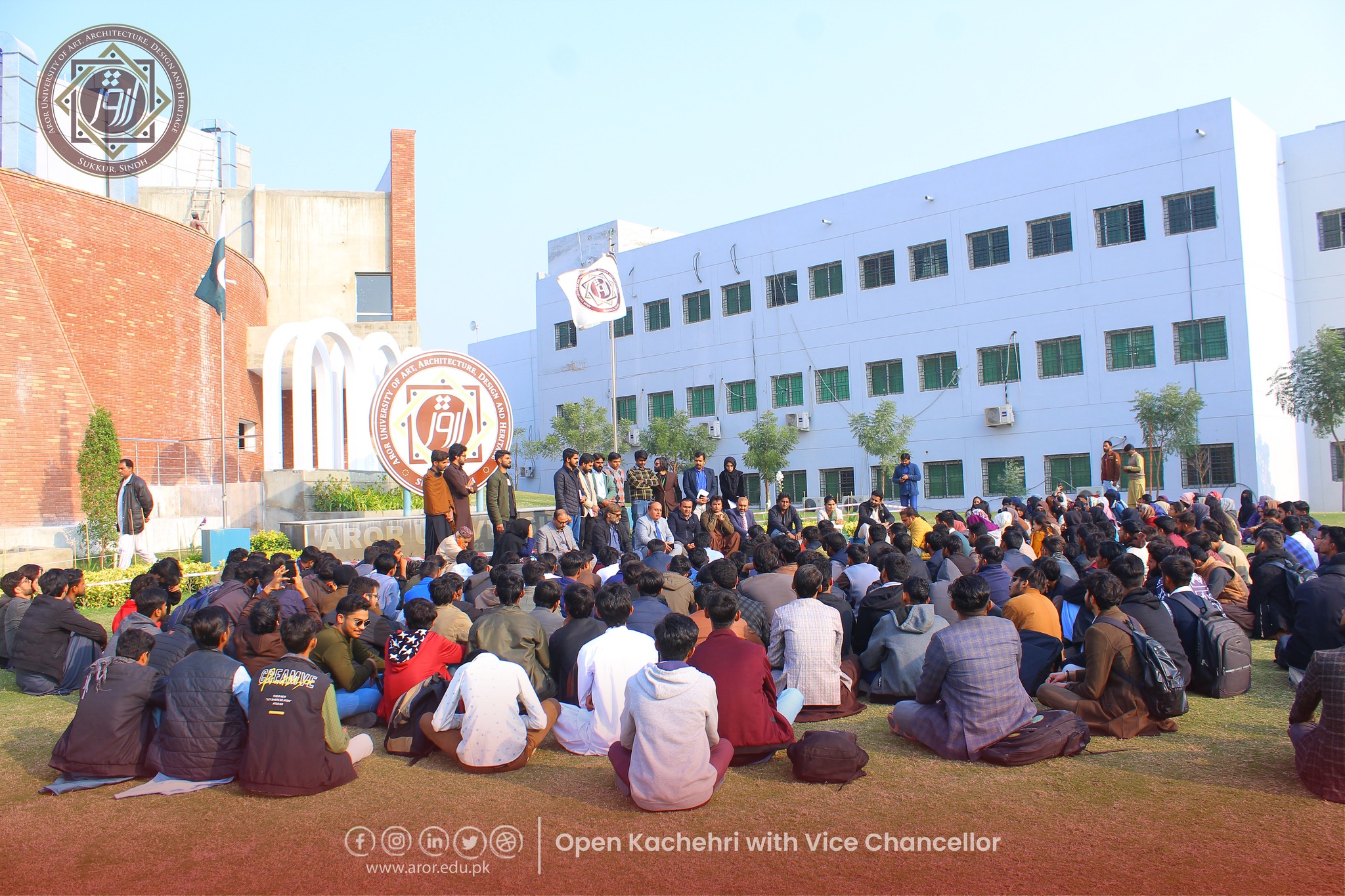 January 20, 2025 โ Aror University Studentsโ Council (AUSC) hosted an Open Kachehri with the Vice Chancellor, Prof. Dr Zahid Hussain Khand, where students had the unique opportunity to engage in direct dialogue with the university leadership. The event, held on campus, served as a platform for students to openly share their concerns and challenges with the Vice Chancellor, who responded to each query with solutions and corrective measures.